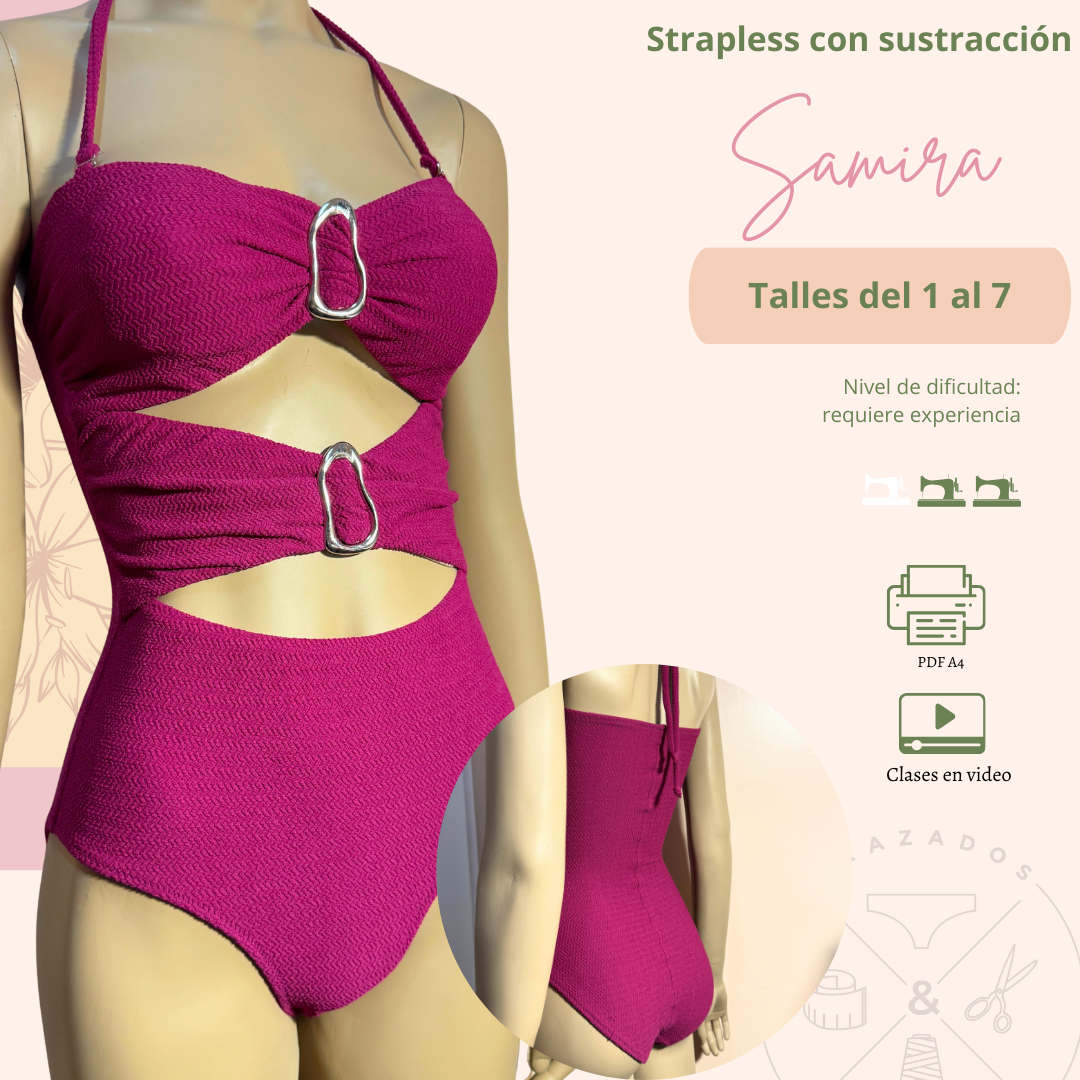 Está disponible en 7 talles, hasta aproximadamente 115 cm de busto y 120 cm de cadera.